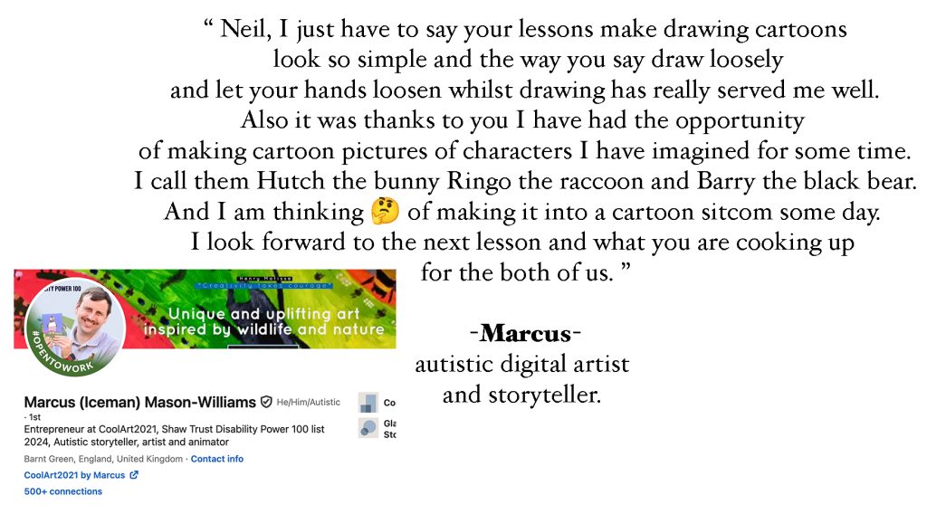 Cartoon workshops that help young people express what they find hard to say. Teaching things that are fun, creative, and express emotions, in a safe way.